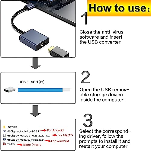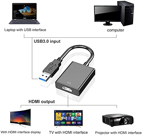 Adattatore da USB a HDMI Porta USB 3.0 ultra veloce integrato con chip di alta qualità per prestazioni stabili e lunga durata. Direttamente su una scheda grafica esterna per fornire video ad alta definizione fluidi su HDTV/proiettore o monitor. Supporta Windows 10, Windows 8.1, Windows 8, Windows 7, Windows XP. Ma tieni presente che Mac/Linux/Vista/Chrome/Firestick non sono supportati.