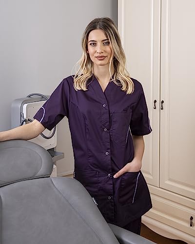 B-well - Casacca da donna a maniche corte con bottoni, modello Silvia, per infermiere, Mirtillo, M