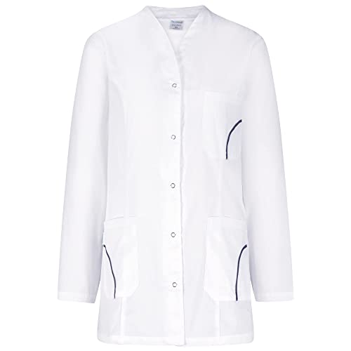 B-well Savina Camice Bianco da Laboratorio Camice Bianco Donna Camice Medico Donna a Maniche Lunghe, 3 Tasche e Bottoni a Pressione, Bianco, XS