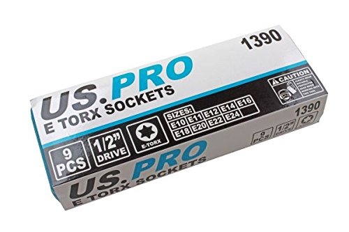 US PRO B1390 9 PC 1/2" Dr E Torx Socket E10 a E24 con custodia soffiata