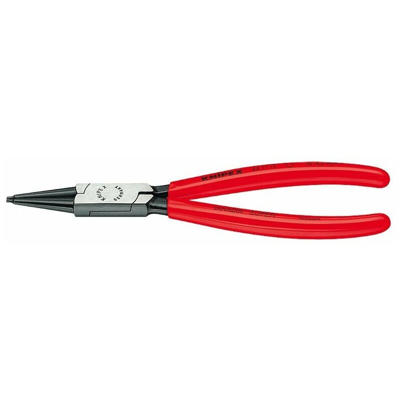 KNIPEX B1750/2 PINZA PINZE PER ANELLI INTERNI SEEGER CON BECCHI DIRITTI S/MOLLA n acciaio al cromo-vanadio forgiato, temperato ad olio Manici rivestiti in resina termoplastica - Forma robusta, forgiate Tipo per fori (anelli interni) Con becchi diritti (DIN 5256 C) - Senza molla Esecuzione standard - Testa pulita Codice Descrizione Per anelli Ø mm Lunghezza totale mm B17502000 PINZE SEEGER B 1750/2 MM 8-13 8÷13 140 B17502001 PINZE SEEGER B 1750/2 MM 12-25 12÷25 140 B17502002 PINZE SEEGER B 1750/2 MM 19-60 19÷60 180 B17502003 PINZE SEEGER B 1750/2 MM40-100 40÷100 225 B17502004 PINZE SEEGER B 1750/2 MM85-140 85÷140 320
