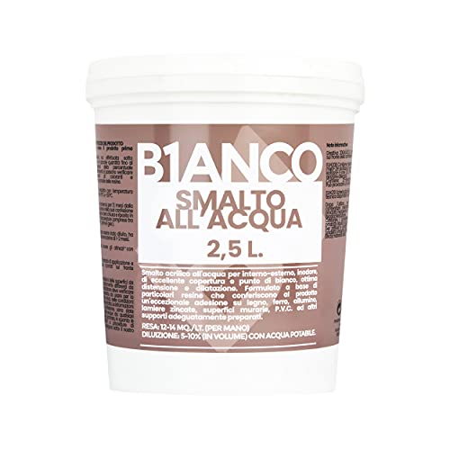 B1anco Smalto Bianco all'Acqua opaco - Vernice per Interno e Esterno, inodore - perfetto su Muro, Legno, Ferro, Alluminio e PVC - 1 Latta da 2,5 Litri
