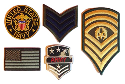 B2SEE Patch Toppe Militari Americane US-A Army Sergente Applicazioni termoadesive Ricamo da Cucire Navy Seals per Stoffa Jeans Vestiti Tessuti 5 Pezzi