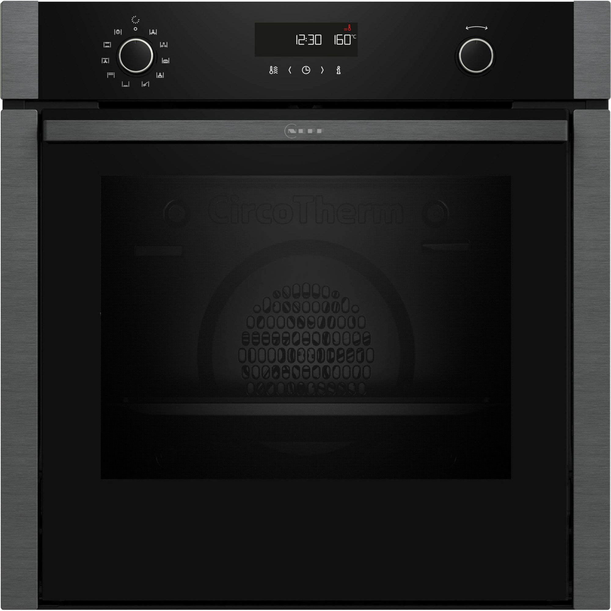 Il Neff B6ACH7AG0 N 50 è un forno efficiente dal punto di vista energetico con un volume utile di 71 litri e un elegante design color grafite. Il display LCD bianco consente una facile gestione ed è possibile installare anche un''estensione. Il forno offre una varietà di modalità di cottura, tra cui grill, aria calda, convenzionale (parte superiore e inferiore), ventilazione e altro ancora. La temperatura può essere regolata individualmente da 30°C a 275°C. Con otto modalità di cottura avrete molte opzioni per cucinare, inclusi il livello per la panificazione del pane, CircoTherm delicato e il livello per la pizza. L''operazione avviene tramite due manopole girevoli e sono disponibili funzioni come l''illuminazione del forno e il riscaldamento rapido. Il meccanismo di apertura della porta del forno retrattile insieme alla sicurezza dei bambini, all''indicatore della temperatura residua e allo spegnimento automatico garantiscono la vostra sicurezza durante la cottura. La pulizia del forno è estremamente facile grazie alla tecnologia di auto-pulizia (pirolitica + idrolitica). Con la funzione 3D-aria calda puoi persino cuocere su tre livelli contemporaneamente. Vivi esperienze culinarie uniche nella tua cucina con l''eccellente forno Neff B6ACH7AG0 N 50.
