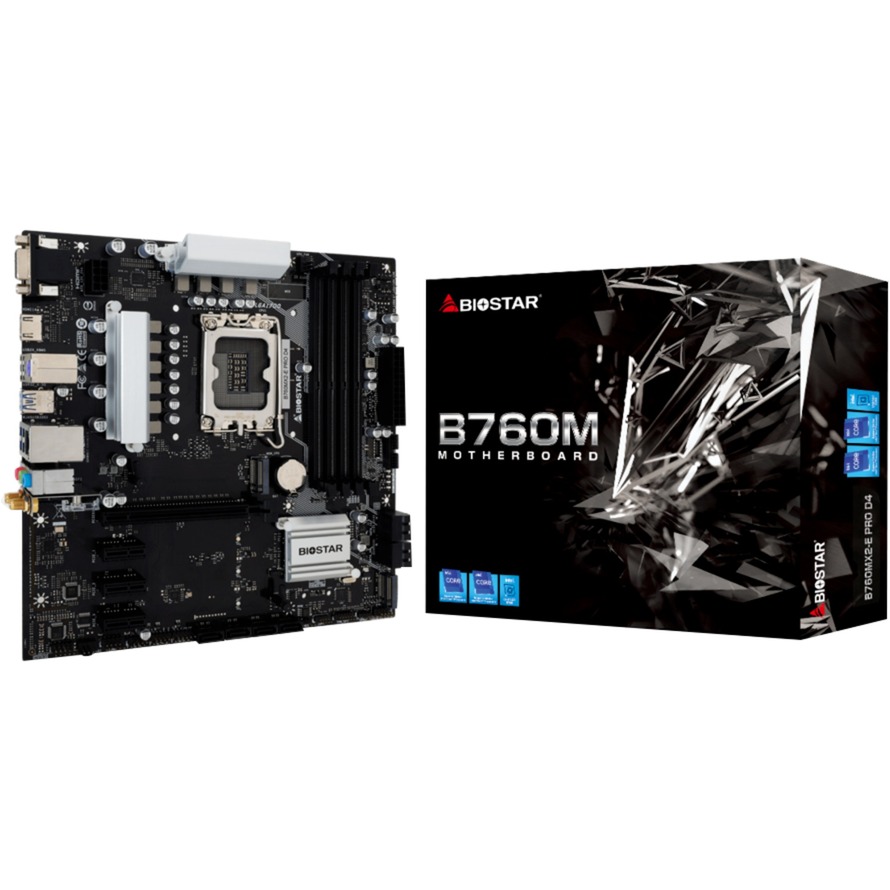 La scheda madre Biostar B760MX2-E Pro D4 è basata sul chipset Intel B760 e supporta i processori Intel®® per Socket 1700 di 13a e 12a generazione. Dispone di quattro slot DIMM DDR4 in modalità dual-channel per un massimo di 128 GB di RAM. Altre caratteristiche della Biostar B760MX2-E Pro D4 includono uno slot PCIe 4.0 x16 e tre slot PCIe 3.0 x1. Inoltre, la Biostar B760MX2-E Pro D4 è dotata di audio a 8 canali, un''interfaccia LAN da 2,5 Gigabit, otto porte SATA3, due porte M.2 e una serie di porte USB.