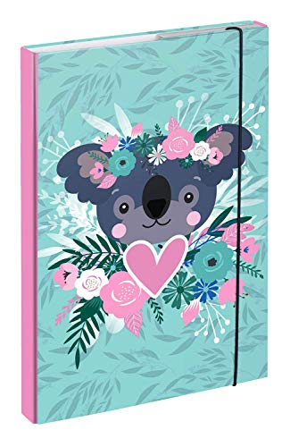 Baagl Raccoglitore per cartelle scolastiche A4 - Cartellina portadocumenti per bambini con elastico e alette interne - Cartella portadocumenti con elastico per ragazze (Koala)