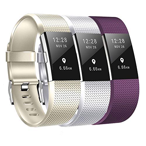 Baaletc - Cinturino di Ricambio per Fitbit Charge 2, Morbido e Confortevole, Compatibile con Fitbit Charge 2, 3colorsE, Large(6.7-8.1 inch Wrist)