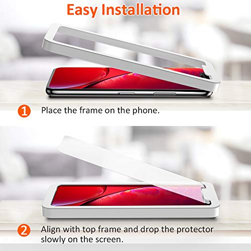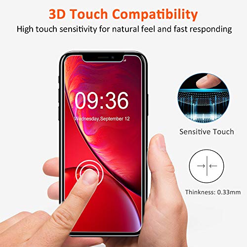 ❅ [Alta Sensibilità e Ultra HD] - Lo spessore di 0,33 mm e l'adesivo su tutta la protezione garantiscono un'elevata sensibilità. Chiuso al 100% e trasparente, questo protettore in vetro temperato per iPhone 11/iPhone xr offre un'esperienza visiva ottimale e naturale