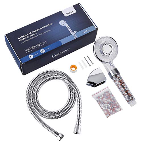 Baban Soffione Doccia ad alta pressione con supporto doccia e 1.5 Metri Tubo flessibile,40% di risparmio idrico,Vieni con un pacchetto di sfere extra minerali per la sostituz