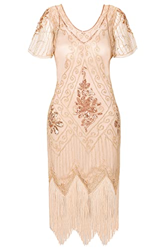 BABEYOND - Abito da donna con maniche corte, stile Gatsby, anni ‘20, costume di carnevale, abito per feste a tema, albicocca, XXL