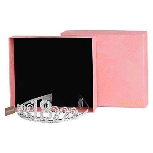 Babeyond Cristallo Strass Corona Compleanno Tiara Birthday Cerchietto Compleanno Accessore Compleanno 18/20/21/30/40/50/60/90 Annni Strass Argento con Pettine (50 anni Argento)