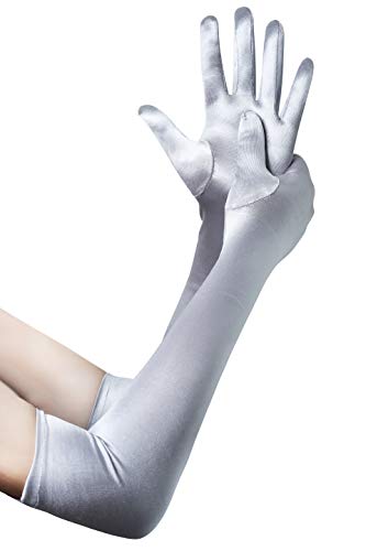 BABEYOND Lunghi Guanti Donna Eleganti Guanti Sposa di Raso fino a Gomito Guanti da Ballo Accessori Anni 20 (Liscio 52cm/Argento)