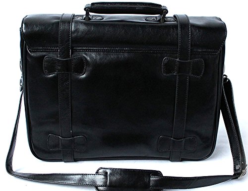 S Babila - Valigetta da ufficio vintage - stile cartella satchel con tracolla - in pelle - Nero