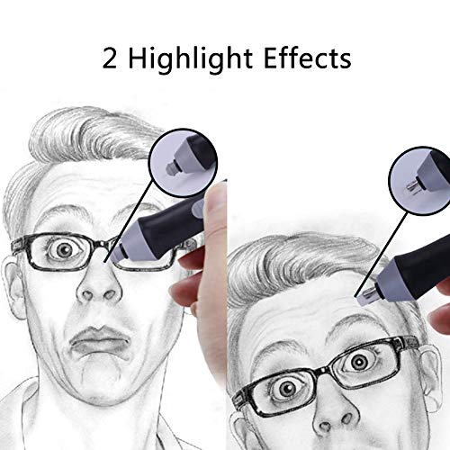 Kit elettrico con 2 dimensioni della gomma: La nostra gomma elettrica include 2 supporti per utilizzare sia gomme di diam. φ2.3mm che di diam φ5mm. Utilizza quella più grande per creare spesse ombreggiature e quella più piccola per cancellare le parti più piccole come capelli. Perfetta per artisti e professionisti.