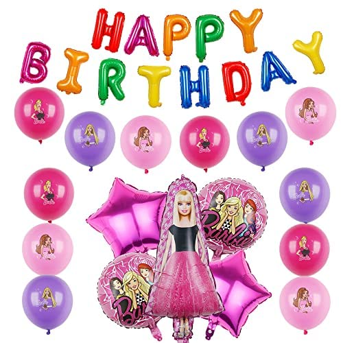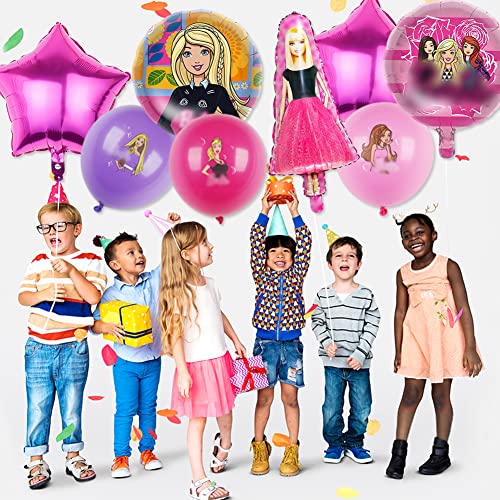 Babioms Top Model Palloncini per Bambini Feste di Forniture, 37" Palloncino Foil 12" Palloncini in lattice, 17 PCS Palloncino Barbiprincess, Palloncini di Party di Barbiprincess