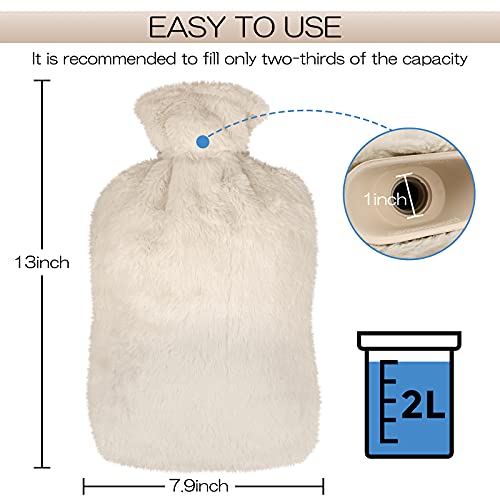 Babmoge Borsa dell'acqua Calda da 2L Borsa per l'acqua calda con peluche Morbida Copertura un ottimo regalo per madre e padre(bianco)
