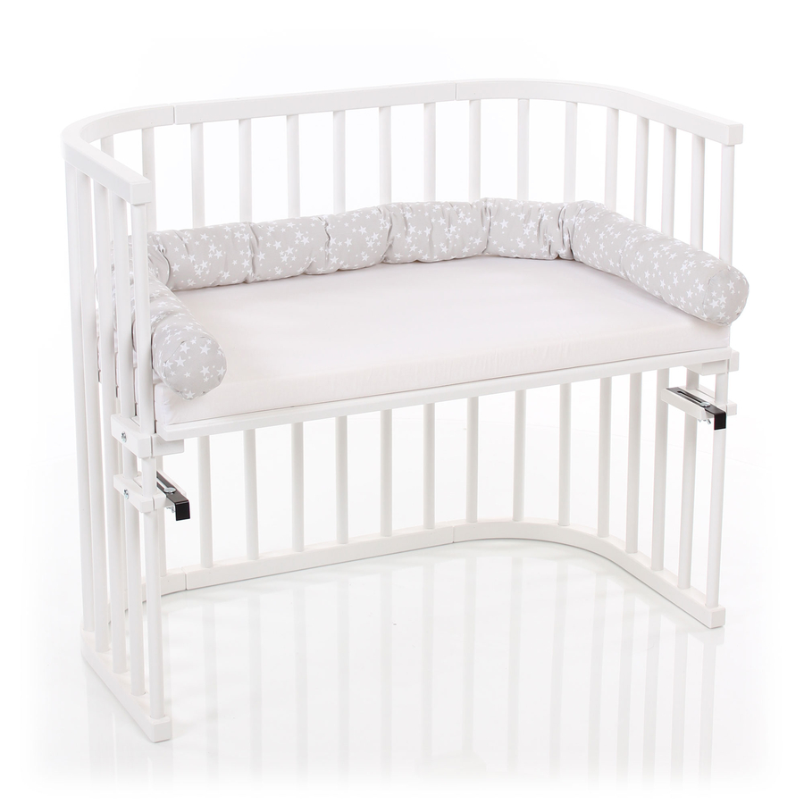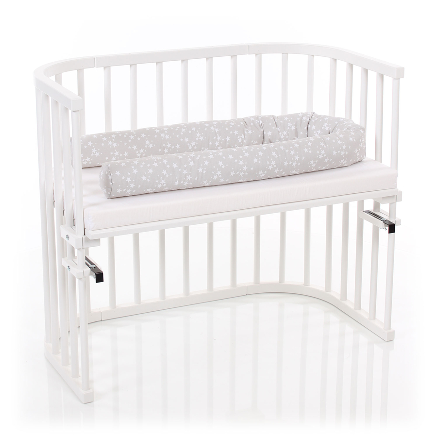 Molti bambini dormono spesso meglio sul lato. In questo aiuta il paracolpi di babybay: posizionatelo nel lettino attorno al vostro bambino per farlo sentire sicuro durante il sonno. Il paracolpi protegge anche la testa dai lati duri del letto. E, perché no, si può anche usare come para-spifferi o per proteggere dagli angoli. Dettagli del prodotto: Dimensioni: ca. 180 x 9 x 9 cm Materiale esterno: 52 % poliestere, 48 % cotone Imbottitura: 100 % Poliestere Lavabile a 40°C Testato per le sostanze nocive e certificato secondo lo Standard 100 da OEKO-TEX® Confidence in Textiles, Classe di prodotto 1 per bambini.