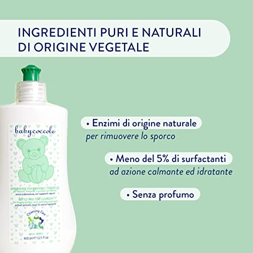 Babycoccole KIT 3 Flaconi DETERGENTE BIBERON, CIUCCI, TETTARELLE, Detersivo con enzimi e attivi naturali, rimuove residui di latte, cibo e sanitizza - 3 X 400 ml