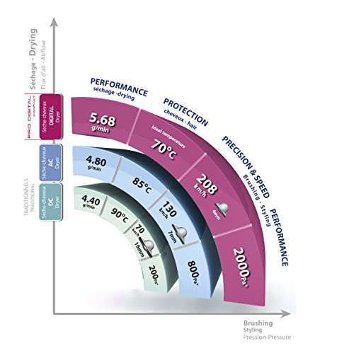 10 volte più vita utile> 10.000h. Flusso d' aria 208 Km/h. Più silenzioso: a livello di rumore equivalente, asciuga a doppia velocità