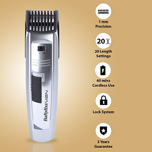 BaByliss For Men E827E - Regolabarba, Lame 32 mm - Lunghezza da 1 a 20 mm - Precisione 1 mm -Rete/ricaricabile, batteria, argento;