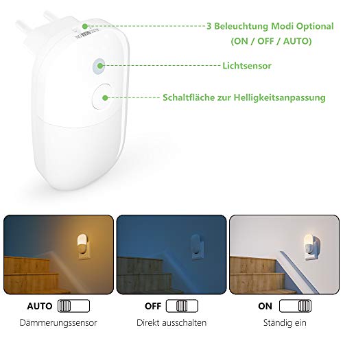 Babyliya LED Night Light with Dusk to Dawn Photocell Sensor and 3 Stage Dimmable, 2 Pack