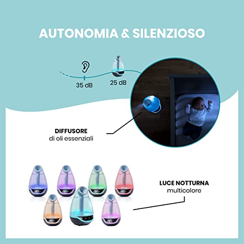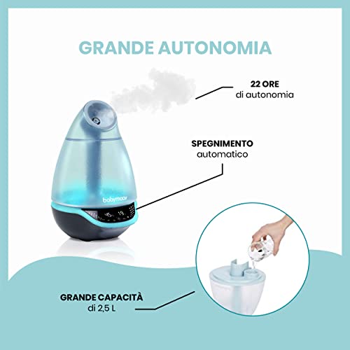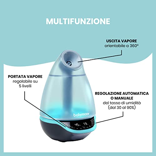 Babymoov Umidificatore digitale Hygro Plus con luce notturna (7 colori), controllo automatico dell'umidità, nebulizzatore di oli essenziali
