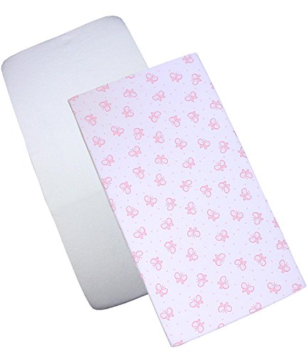 BabyPrem Bebè Bambino Set 2 Lenzuolo Con Angoli Elasticizzati Per Culla 84 x 43 cm Cotone 1 Bianca 1 Rosa Farfalla