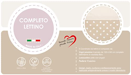 Babysanity Piumino Lettino Neonato con Trapunta Lettino Federa Copripiumino e Lenzuola Culla con Angoli 60x120 Sfoderabile Senza Paracolpi Lettino - Made in Italy - (Cuori Beige)