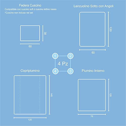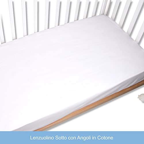 IL Completo Culla Neonato è Composto da Copripiumino Lettino Neonato in cotone 100% Ricamato e rimboccabile da 120x145cm Piumone Lettino Neonato sfilabile con Imbottitura in morbida ovatta anallergica 120x75cm Lenzuolino Materasso Lettino con Angoli 3,Federa Cuscino 100% cotone misure 40x60cm
