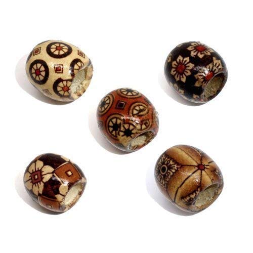 Bacabella 20865 Perle Legno 17x16mm Grande Marrone Toni Della Terra Fantasia Rose 7,4mm (40 Pezzi) per Fabbricazione Gioielli o Anche Dreadlock-Träger