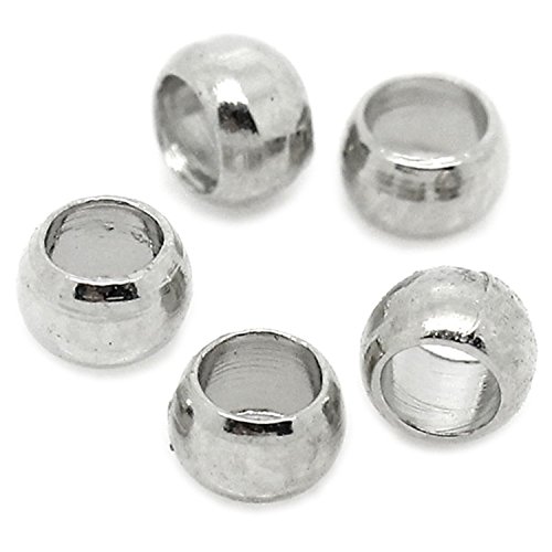 Bacabella 20990 Sfere Schiacciate 2x3mm (100 Pezzi) Perline in Forma Sferica da Fissare di Perle su Filo - Argento Antico