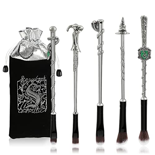 3D Bacchetta Magica Pennelli Trucco, 5 Pezzi H-Potter Manico Metallo Pennelli Make Up, Gadget H-Potter Accessori Regalo per Ragazze Donne