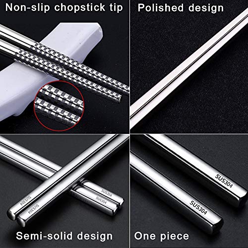 Perfetto per ristoranti e riunioni di famiglia. 5 paia di bacchette sono molto adatte per la cucina asiatica, adatte per tagliatelle, gnocchi, sushi, barbecue bento e qualsiasi cena asiatica. Le bacchette in acciaio inossidabile ti daranno una piacevole esperienza culinaria.