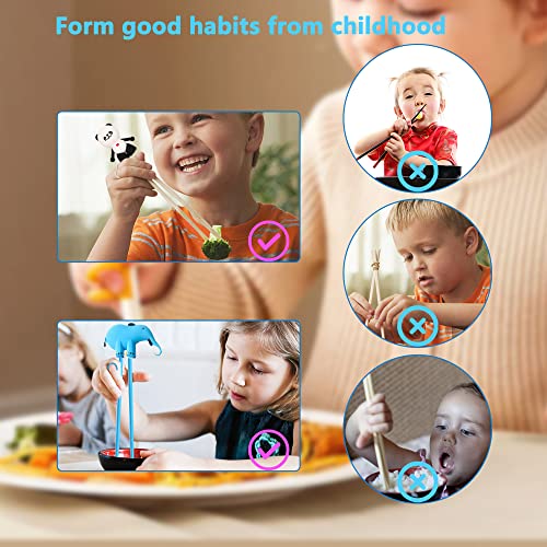 [Materiali di Alta Qualità]: Bacchette per Bambini realizzati in silicone e plastica di alta qualità, sicuri, non tossici, riutilizzabili, facili da pulire, sentirsi a proprio agio. 5 tipi di cappucci in silicone per animali, il design carino può aumentare l'appetito dei bambini.