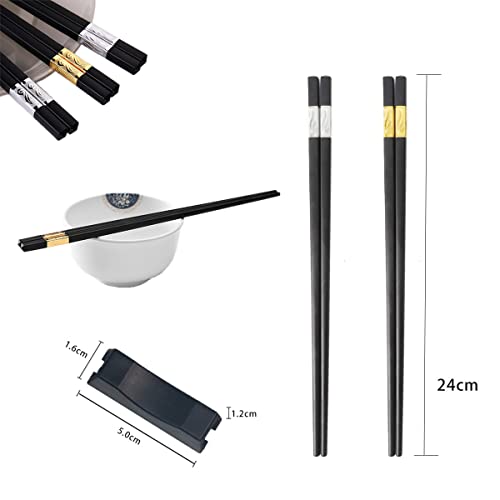 10 Paia Bacchette Cinesi, Bacchette da Cucina Bacchette Riutilizzabili Bacchette per Adulti Materiale in Lega, Bacchette per Casa, Ristorante con 2 Supporti per Bacchette(Jin Ruyi)