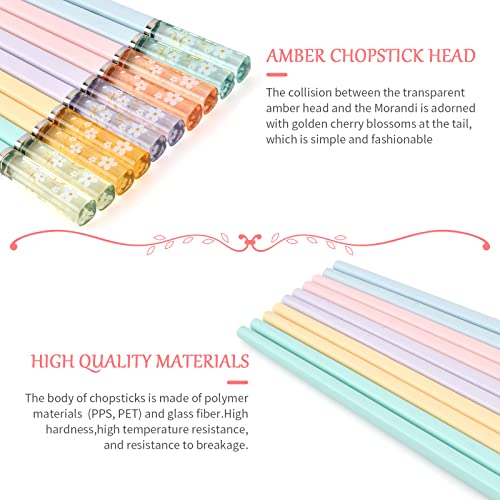 Set di Bacchette, 5 Paia di Bacchette Cinesi Multicolore Bacchette in Fibra di Vetro Bacchette Sushi Riutilizzabili, Lavabili in Lavastoviglie, 24.3 cm,