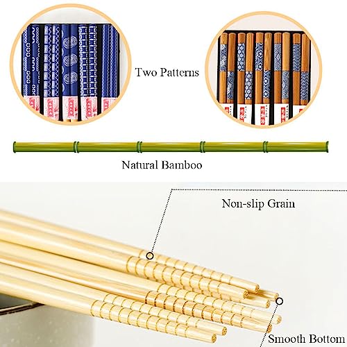 10 Paia di Bacchette in Legno Massiccio Stile Giapponese per la Casa, Multicolore, Riutilizzabili, Lavabili in Lavastoviglie, con Modello Classico, 22,5 cm
