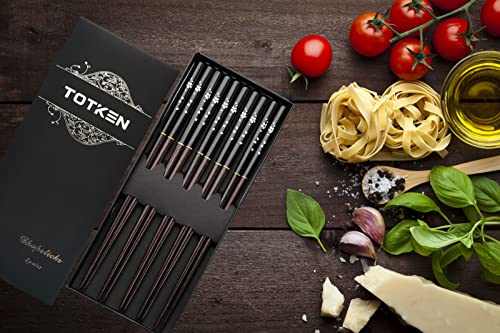 Bacchette di legno, TOTKEN 5 paia top grade stile giapponese Chopsticks riutilizzabili per sushi noodles con scatola regalo (nero)