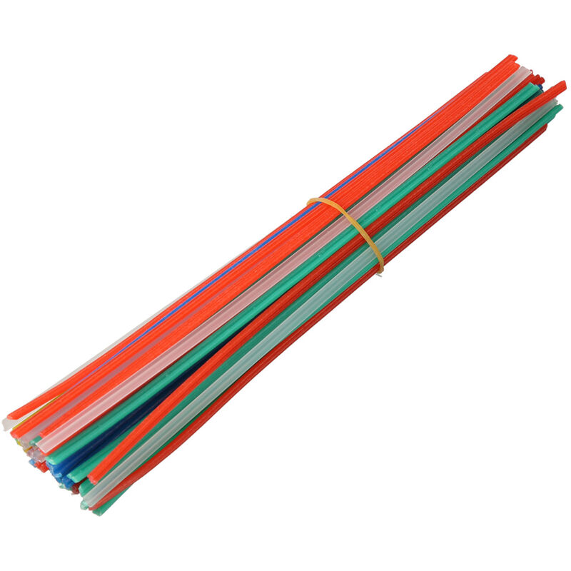 Caratteristiche: Resistenza all'usura molto elevata, sette volte la resistenza all'usura rispetto all'acciaio, quattro volte rispetto al PTFE. Elevatissima resistenza all'adesione, la superficie del prodotto aderisce difficilmente ad altro materiale. Principalmente utilizzando la sua elevata resistenza all'usura, alta resistenza antiurto, resistenza anti-freddo, autolubrificazione, caratteristica elettrica. Buona resistenza alle basse temperature, in azoto liquefatto (- 196), ha comunque il prolungamento. Buona resistenza alla corrosione, ha proprietà chimiche molto stabili e può sopportare la corrosione di tutti i tipi mezzo corrosivo e solvente organico in determinati intervalli di temperatura e umidità. Specifiche: Materiale: PP (polipropilene) Lunghezza: 25 cm Colore: verde, giallo, rosso, blu, bianco (10 per colore) Applicazione: bacchette di saldatura in PP utilizzate per autoscontri, piastra deflettore anteriore e posteriore delle auto, guscio della batteria dell'auto della