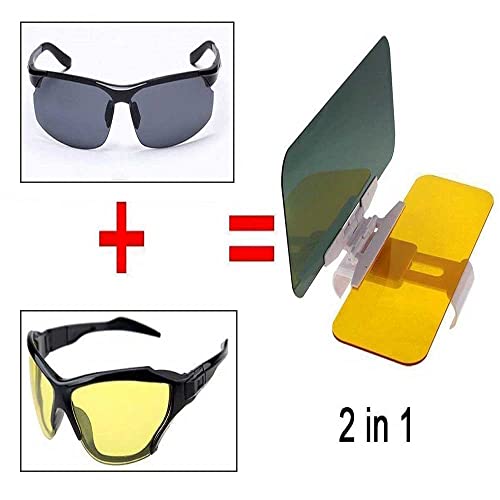 【Design 2 in 1】 Il parasole per auto è composto da occhiali da sole e occhiali da visione notturna, che aiuta a resistere all'improvviso abbagliamento del sole e alle fonti di attenuazione come luce forte o luci di marcia dell'auto o veicolo per garantire la sicurezza di guida.