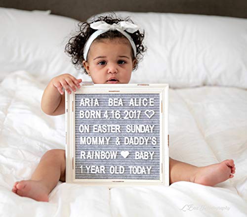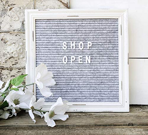 Bacheca in feltro con cornice in legno rustico bianco e supporto di Felt Creative Home Goods 10x10 " include 350 lettere dell'alfabeto, numeri, icone (Grigio)