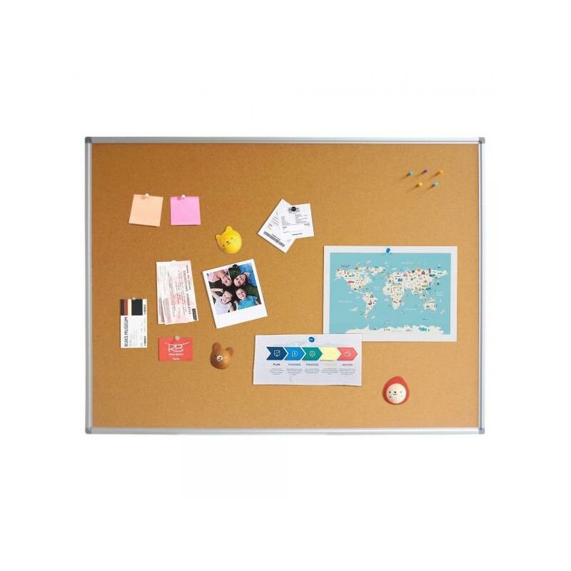 Lavagna in sughero con cornice in alluminio - Bordi rifiniti in plastica ABS - Bacheca con superficie in sughero - Da utilizzare con gli spilli - Fornita con ganci mobili per appenderla al muro - Orientamento orizzontale o verticale - Dimensioni 90 x 120 cm Materiali ABS sintetico, Alluminio, Sughero Larghezza 1200 mm Altezza 900 mm Colore del prodotto Alluminio, Marrone