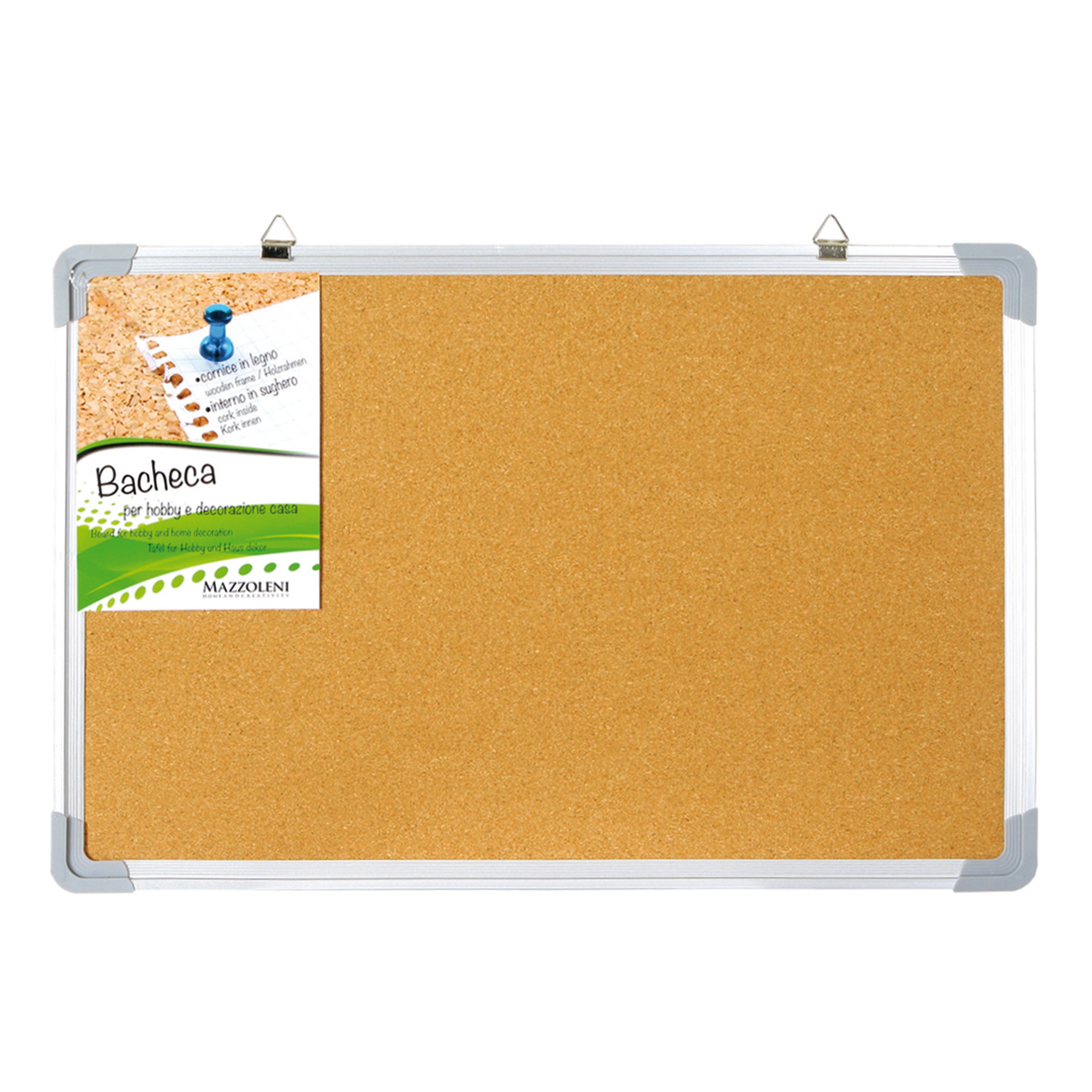 Bacheca in sughero con cornice in alluminio;
