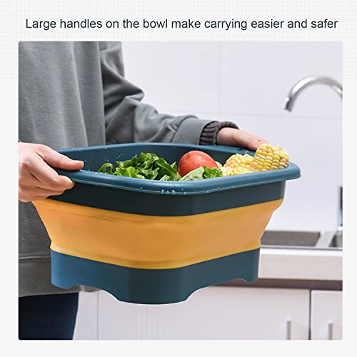 【Ciotola per piatti pieghevole】 Dimensioni ridotte: 16,53x11,8x 2,36 pollici.Dimensioni estese: 16,53x11,8x7,08 pollici.