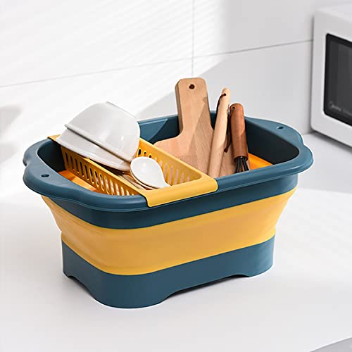 Bacinella Pieghevole Scolapiatti Pieghevole da Campeggio per Lavare i Piatti, Portatile, salvaspazio da Cucina (Color: Dark Blue)