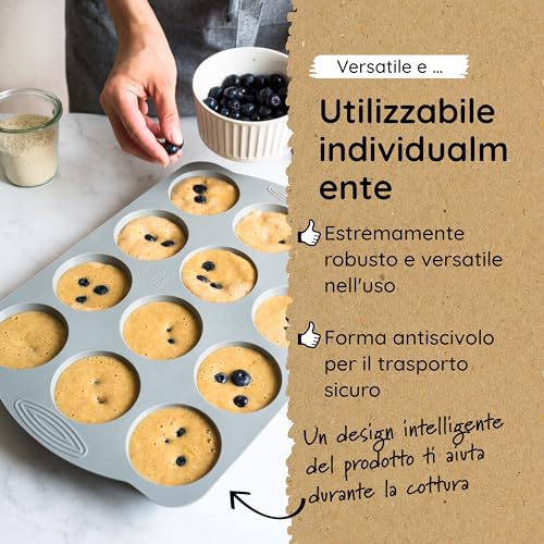 Backefix KOMFORT 12 stampo muffin silicone grande - 7,5x5,5x4cm | stampi per muffin in silicone antiaderente, standard tedeschi, senza BPA | grande stampo silicone muffin 12, lavabile in lavastoviglie