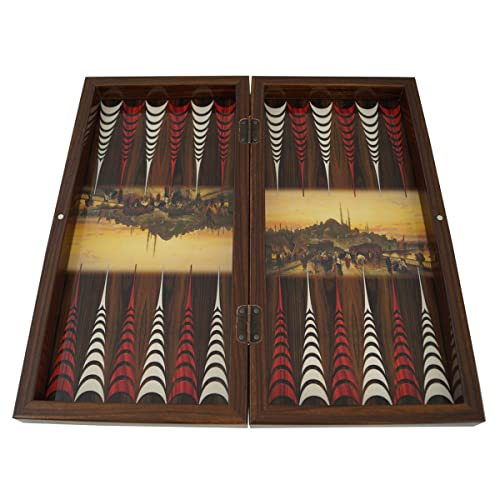 LAVORO A MANO: La scatola di legno incernierata con il campo da gioco del backgammon è creata in molti passaggi di produzione individuali da un attento lavoro manuale. Dopo aver applicato il disegno sul pannello di legno, viene applicato un rivestimento protettivo triplo della superficie. Successivamente, vengono applicati 3 strati di vernice poliuretanica lucida per creare lo speciale effetto lucido. Un grande sforzo, ma ne vale la pena come si può vedere sul prodotto finale.