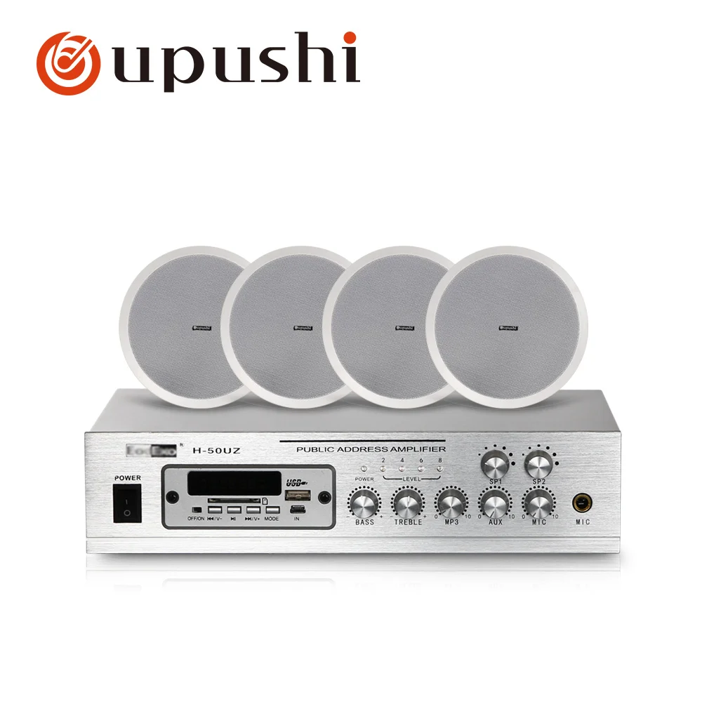 Home background music system 2 zone pa amplifier 8 inch in ceiling speakers 50w home digital audio with MP3, USB, FM, SD card