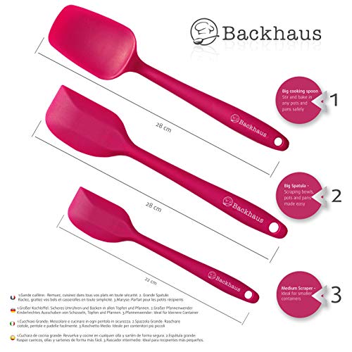 BACKHAUS ® Set Spatole e Cucchiaio in Silicone Platino Antiaderente con Nucleo in Acciaio, 3 Utensili da Cucina di qualità professionale Resistente al Calore, Rosso