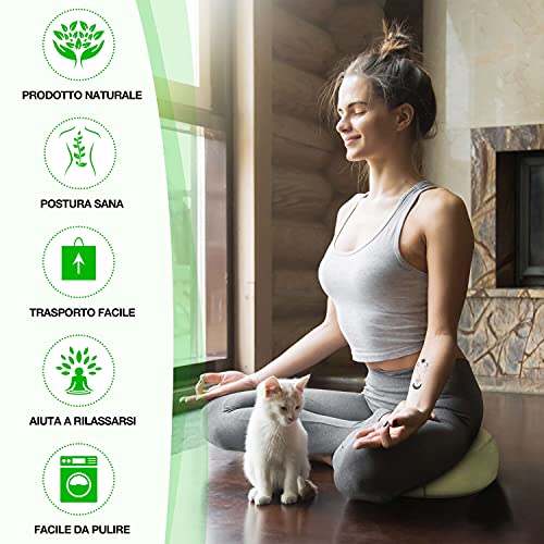 SEDUTA SANA: Il cuscino yoga con imbottitura naturale assicura una seduta ergonomica. Grazie alla quantità di imbottitura regolabile individualmente, puoi trovare facilmente la tua posizione di seduta ideale.
